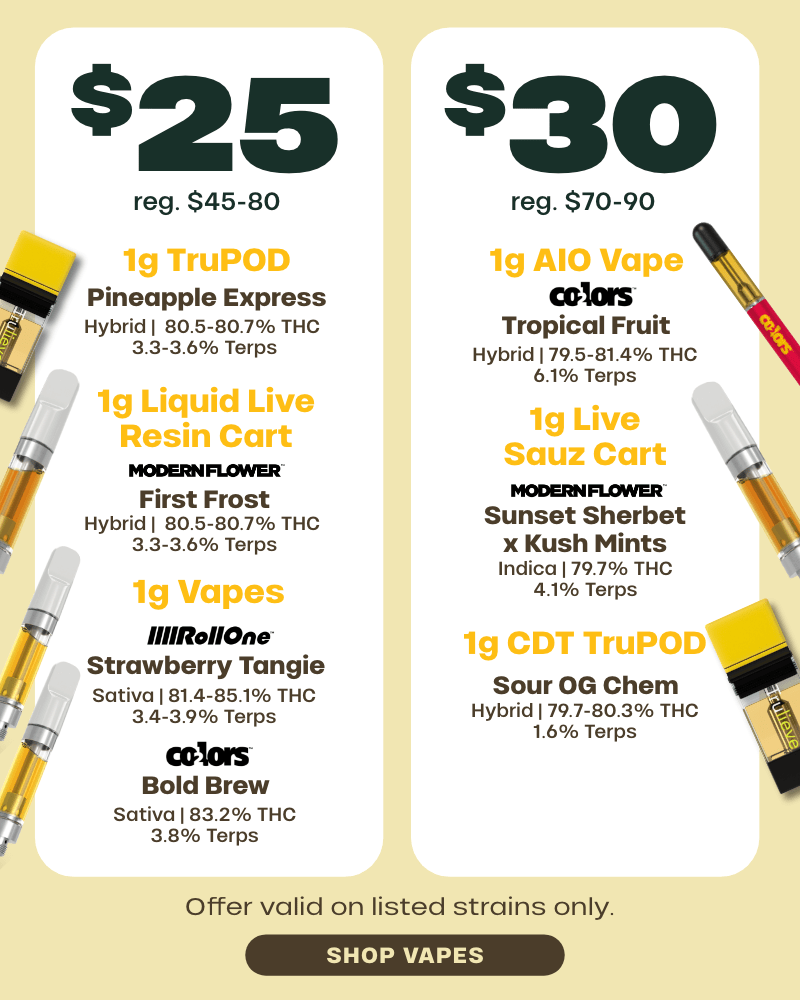 Saturday Deals: Offer is valid 10/17/2025 – 10/18/2025 in Florida locations only. Orders must be placed by end of day on 10/18/2025 to qualify, store hours may vary. For delivery orders, orders must be placed by 10/18/2025 to qualify for savings. Offer valid on select strains listed only, no substitutions. Edibles bundle promotion excludes 200mg chocolate. Cannot be combined with any other patient discounts, coupon, product promotion or sale. Employees are eligible for promotion. βOffer has no cash value. Returns of any portion of the purchase will require equal forfeiture of offer or amount equal to offer. Trulieve, subsidiaries, affiliates, parent companies and third parties on behalf of Trulieve have the right to end or modify any offer at any time. Other restrictions may apply. Please see dispensary associate for more details. Product variety, availability, and THC% may vary by location.βββββββ