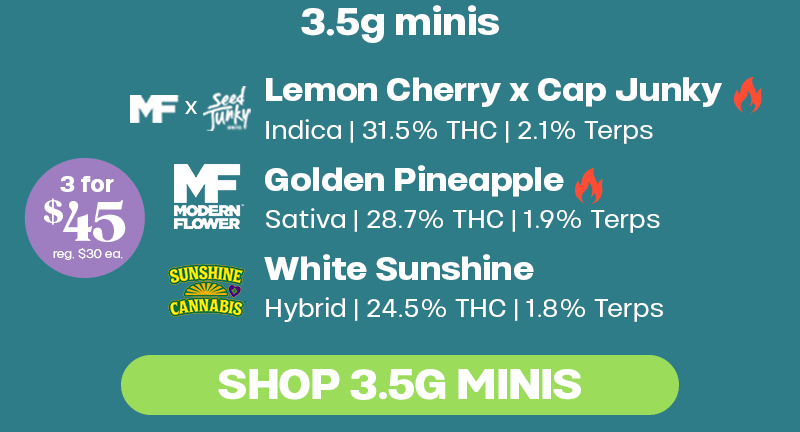 Minis: Offer is valid 1/25/2026 at 6pm – 1/27/2026 in Florida locations only. Orders must be placed by end of day on 1/27/2026 to qualify, store hours may vary. For delivery orders, orders must be placed by 1/27/2026 to qualify for savings. Cannot be combined with any other patient discounts, coupon, product promotion or sale. Employees eligible for promotion. Offer has no cash value. Returns of any portion of the purchase will require equal forfeiture of offer or amount equal to offer. Trulieve, subsidiaries, affiliates, parent companies and third parties on behalf of Trulieve have the right to end or modify any offer at any time. Other restrictions may apply. Please see dispensary associate for more details. Product variety, availability, and THC% may vary by location.