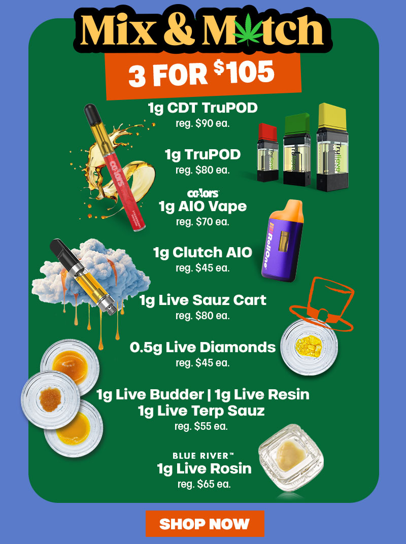 Win The Weekend: Offer is valid 3/13/2026 – 3/15/2026 in Florida locations only. Orders must be placed by end of day on 3/15/2026 to qualify, store hours may vary. For delivery orders, orders must be placed by 3/15/2026 to qualify for savings. Offer valid on listed strains only, no substitutions, while supplies last. Cannot be combined with any other patient discounts, coupon, product promotion or sale. Employees are eligible for promotion. Offer has no cash value. Returns of any portion of the purchase will require equal forfeiture of offer or amount equal to offer. Trulieve, subsidiaries, affiliates, parent companies and third parties on behalf of Trulieve have the right to end or modify any offer at any time. Other restrictions may apply. Please see dispensary associate for more details. Product variety, availability, and THC% may vary by location.