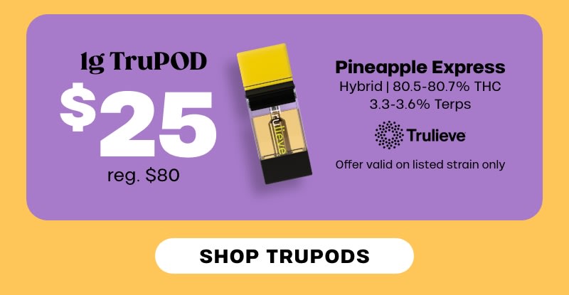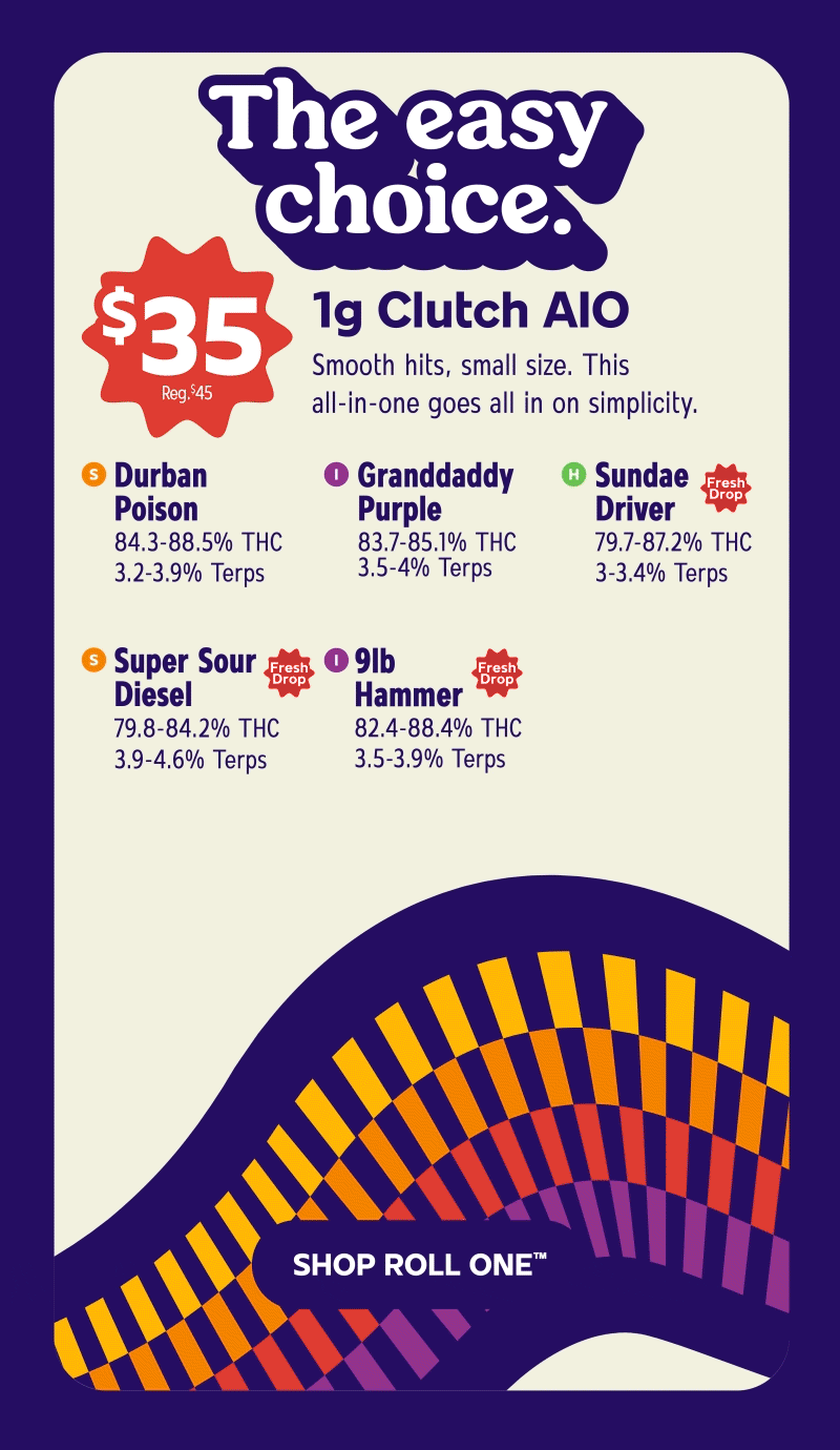 Clutch AIO: Offer is valid 10/16/2025 in Florida locations only. Orders must be placed by end of day on 10/16/2025 to qualify, store hours may vary. For delivery orders, orders must be placed by 10/16/2025 to qualify for savings. Cannot be combined with any other patient discounts, coupon, product promotion or sale. Employees are eligible for promotion. Offer has no cash value. Returns of any portion of the purchase will require equal forfeiture of offer or amount equal to offer. Trulieve, subsidiaries, affiliates, parent companies and third parties on behalf of Trulieve have the right to end or modify any offer at any time. Other restrictions may apply. Please see dispensary associate for more details. Product variety, availability, and THC% may vary by location.Β