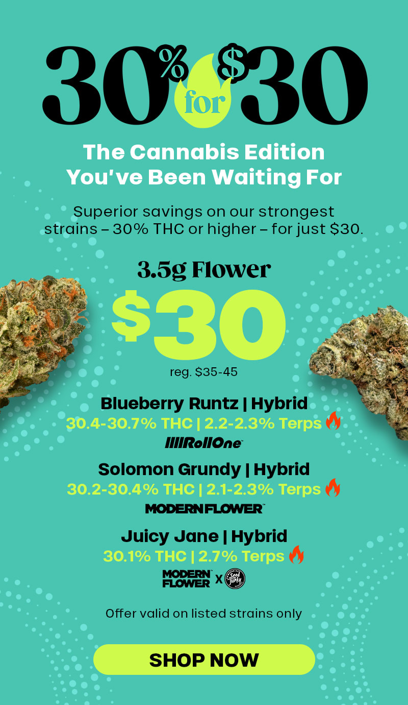 Offer is valid 11/18/2025 at 12pm – 11/20/2025 in Florida locations only. Orders must be placed by end of day on 11/20/2025 to qualify, store hours may vary. For delivery orders, orders must be placed by 11/20/2025 to qualify for savings. Offer valid on listed strains only, no substitutions. Cannot be combined with any other patient discounts, coupon, product promotion or sale. Employees are eligible for promotion. Offer has no cash value. Returns of any portion of the purchase will require equal forfeiture of offer or amount equal to offer. Trulieve, subsidiaries, affiliates, parent companies and third parties on behalf of Trulieve have the right to end or modify any offer at any time. Other restrictions may apply. Please see dispensary associate for more details. Product variety, availability, and THC% may vary by location.โโย