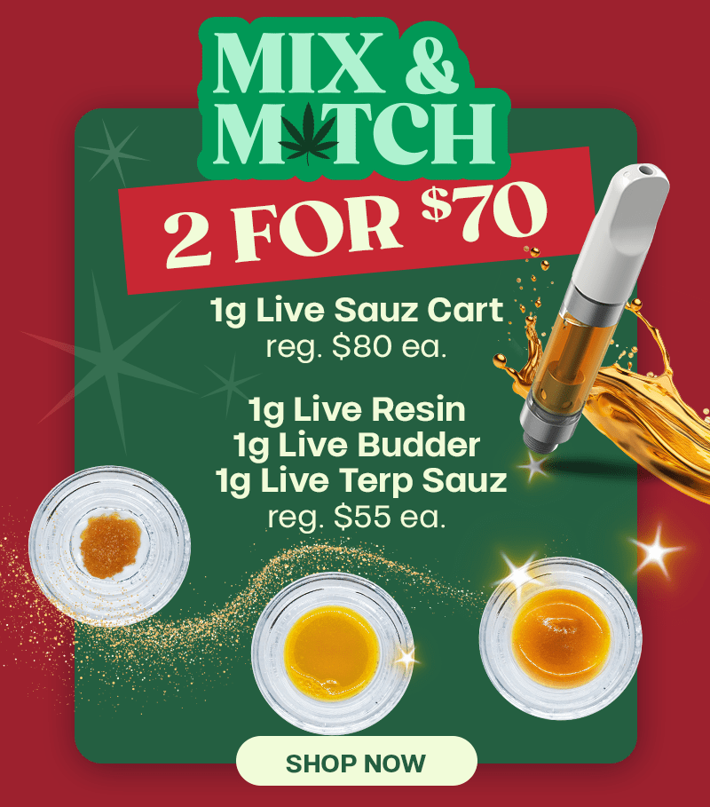 Tuesday Deals: Offer is valid 12/16/2025 in Florida locations only. Orders must be placed by end of day on 12/16/2025 to qualify, store hours may vary. For delivery orders, orders must be placed by 12/16/2025 to qualify for savings. Cannot be combined with any other patient discounts, coupon, product promotion or sale. Employees are eligible for promotion. βOffer has no cash value. Returns of any portion of the purchase will require equal forfeiture of offer or amount equal to offer. Trulieve, subsidiaries, affiliates, parent companies and third parties on behalf of Trulieve have the right to end or modify any offer at any time. Other restrictions may apply. Please see dispensary associate for more details. Product variety, availability, and THC% may vary by location.βββββββΒ Β
