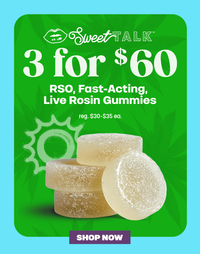 Sweet Talk Fast Acting Gummies: Offer is valid 3/9/2026 – 3/10/2026 in Florida locations only. Orders must be placed by end of day on 3/10/2026 to qualify, store hours may vary. For delivery orders, orders must be placed by 3/10/2026 to qualify for savings. Cannot be combined with any other patient discounts, coupon, product promotion or sale. Employees are eligible for promotion. βOffer has no cash value. Returns of any portion of the purchase will require equal forfeiture of offer or amount equal to offer. Trulieve, subsidiaries, affiliates, parent companies and third parties on behalf of Trulieve have the right to end or modify any offer at any time. Other restrictions may apply. Please see dispensary associate for more details. Product variety, availability, and THC% may vary by location.ββββΒ