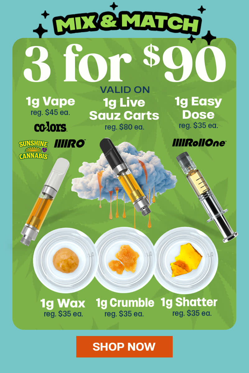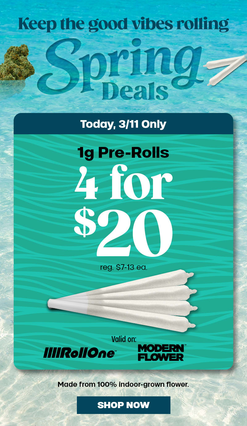 Spring Daily Deal: Offer is valid 3/11/2026 in Florida locations only. Orders must be placed by end of day on 3/11/2026 to qualify, store hours may vary. For delivery orders, orders must be placed by 3/11/2026 to qualify for savings. Cannot be combined with any other patient discounts, coupon, product promotion or sale. Employees are eligible for promotion. Offer has no cash value. Returns of any portion of the purchase will require equal forfeiture of offer or amount equal to offer. Trulieve, subsidiaries, affiliates, parent companies and third parties on behalf of Trulieve have the right to end or modify any offer at any time. Other restrictions may apply. Please see dispensary associate for more details. Product variety, availability, and THC% may vary by location.