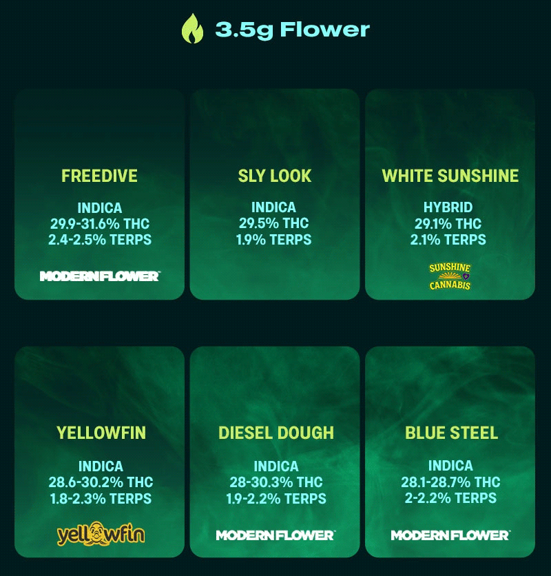 | All Weekend: 35% Off All Flower / 25% off All Vapes | ||||||||||||||||||