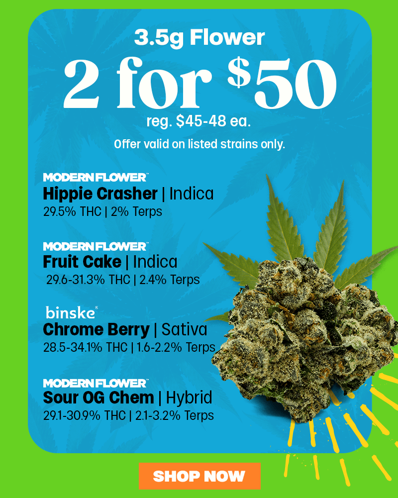 Great Flower at $25: Offer is valid 4/20/2026 – 4/26/2026 in Florida locations only. Orders must be placed by end of day on 4/26/2026 to qualify, store hours may vary. For delivery orders, orders must be placed by 4/26/2026 to qualify for savings. Cannot be combined with any other patient discounts, coupon, product promotion or sale. Employees are eligible for promotion. Offer has no cash value. Returns of any portion of the purchase will require equal forfeiture of offer or amount equal to offer. Trulieve, subsidiaries, affiliates, parent companies and third parties on behalf of Trulieve have the right to end or modify any offer at any time. Other restrictions may apply. Please see dispensary associate for more details. Product variety, availability, and THC% may vary by location.
