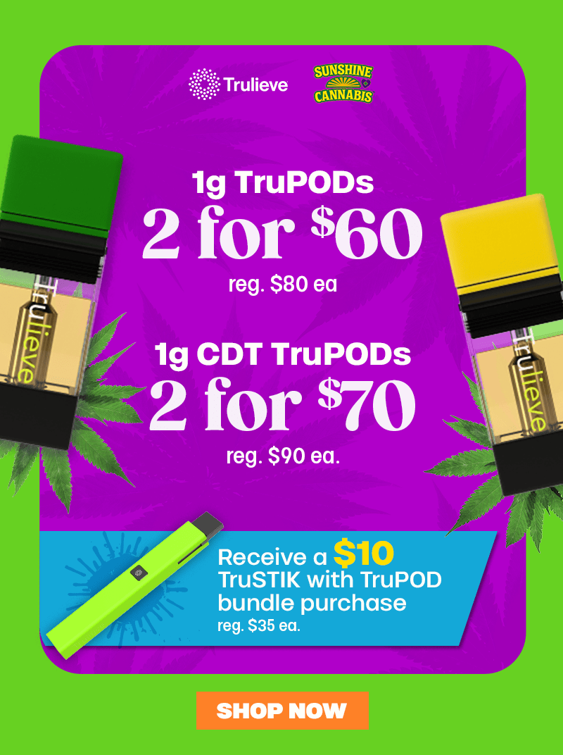 420 | DEALS: Offer is valid 4/19/2026 at 10pm EST – 4/20/2026 in Florida locations only. Orders must be placed by end of day on 4/20/2026 to qualify, store hours may vary. For delivery orders, orders must be placed by 4/20/2026 to qualify for savings. Cannot be combined with any other patient discounts, coupon, product promotion or sale. Employees are eligible for promotion. Offer has no cash value. Returns of any portion of the purchase will require equal forfeiture of offer or amount equal to offer. Trulieve, subsidiaries, affiliates, parent companies and third parties on behalf of Trulieve have the right to end or modify any offer at any time. Other restrictions may apply. Please see dispensary associate for more details. Product variety, availability, and THC% may vary by location.