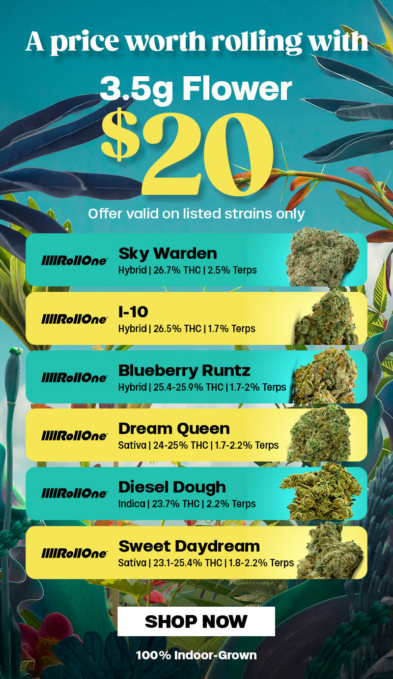Great Flower at $20:β€―Offer is valid 4/6/2026 – 4/12/2026 in Florida locations only. Orders must be placed by end of day on 4/12/2026 to qualify, store hours may vary. For delivery orders, orders must be placed by 4/12/2026 to qualify for savings. Cannot be combined with any other patient discounts, coupon, product promotion or sale. Employees are eligible for promotion. Offer has no cash value. Returns of any portion of the purchase will require equal forfeiture of offer or amount equal to offer. Trulieve, subsidiaries, affiliates, parent companies and third parties on behalf of Trulieve have the right to end or modify any offer at any time. Other restrictions may apply. Please see dispensary associate for more details. Product variety, availability, and THC% may vary by location.β€Œ
