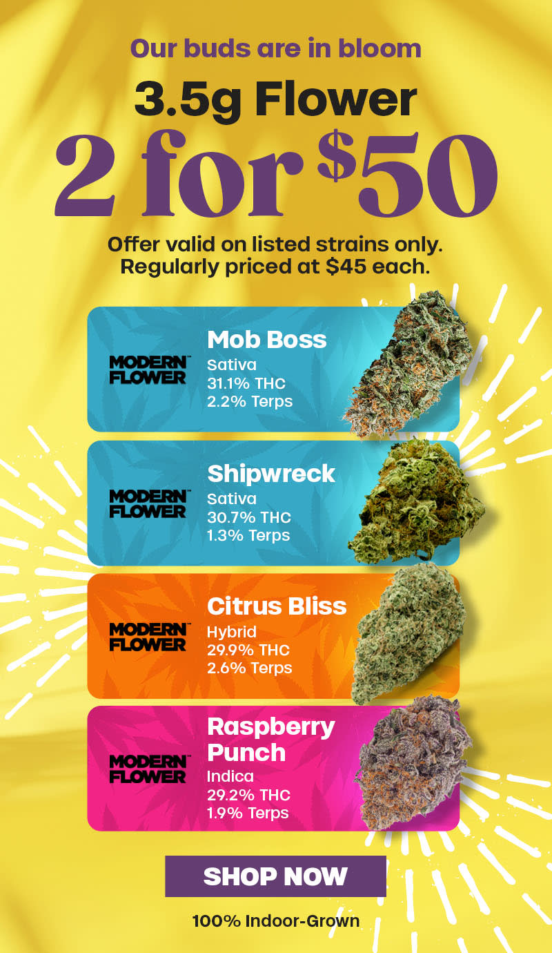 2 for $50: Offer is valid 3/11/2026 – 3/12/2026 in Florida locations only. Orders must be placed by end of day on 3/12/2026 to qualify, store hours may vary. For delivery orders, orders must be placed by 3/12/2026 to qualify for savings. Offer valid on listed strains only, no substitutions, while supplies last. Cannot be combined with any other patient discounts, coupon, product promotion or sale. Employees are eligible for promotion. βOffer has no cash value. Returns of any portion of the purchase will require equal forfeiture of offer or amount equal to offer. Trulieve, subsidiaries, affiliates, parent companies and third parties on behalf of Trulieve have the right to end or modify any offer at any time. Other restrictions may apply. Please see dispensary associate for more details. Product variety, availability, and THC% may vary by location.ββββββ