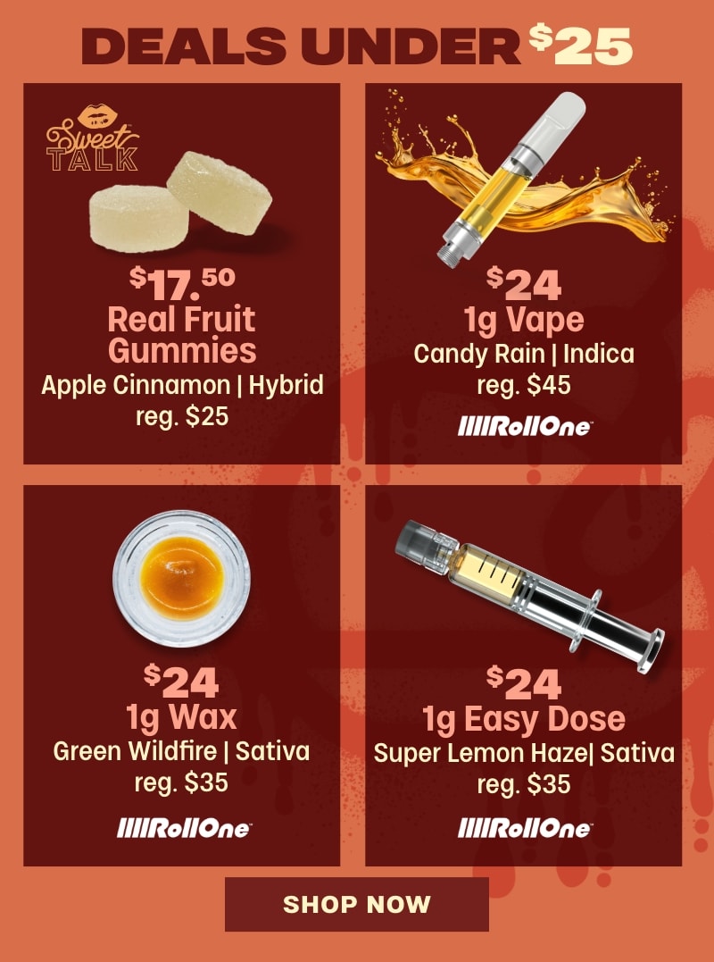 Monday Deals: Offer is valid 11/24/2025 in Florida locations only. Orders must be placed by end of day on 11/24/2025 to qualify, store hours may vary. For delivery orders, orders must be placed by 11/24/2025 to qualify for savings. Cannot be combined with any other patient discounts, coupon, product promotion or sale. Employees are eligible for promotion. Offer has no cash value. Returns of any portion of the purchase will require equal forfeiture of offer or amount equal to offer. Trulieve, subsidiaries, affiliates, parent companies and third parties on behalf of Trulieve have the right to end or modify any offer at any time. Other restrictions may apply. Please see dispensary associate for more details. Product variety, availability, and THC% may vary by location.