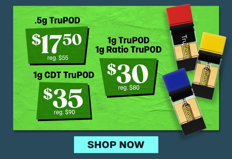 Fri-Sun Deals: Offer is valid 4/16/2026 at 10pm EST – 4/19/2026 in Florida locations only. Orders must be placed by end of day on 4/19/2026β€Œ to qualify, store hours may vary. For delivery orders, orders must be placed by 4/19/2026β€Œ to qualify for savings. Cannot be combined with any other patient discounts, coupon, product promotion or sale. Employees are eligible for promotion. Offer has no cash value. Returns of any portion of the purchase will require equal forfeiture of offer or amount equal to offer. Trulieve, subsidiaries, affiliates, parent companies and third parties on behalf of Trulieve have the right to end or modify any offer at any time. Other restrictions may apply. Please see dispensary associate for more details. Product variety, availability, and THC% may vary by location.