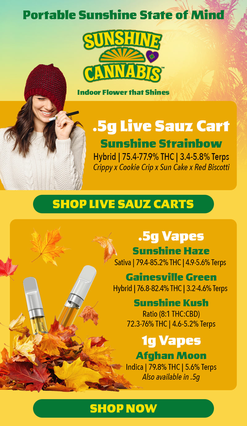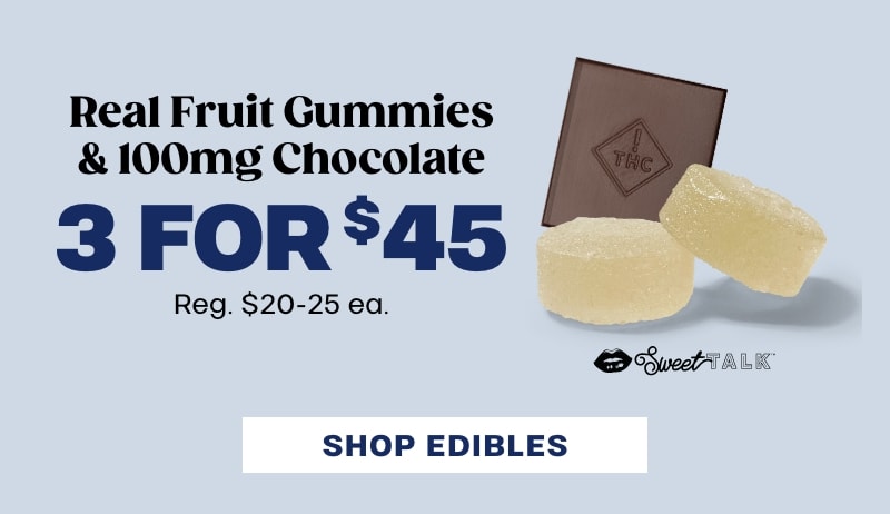 Wed-Thur Deals: Offer is valid 11/12/2025 – 11/13/2025 in Florida locations only. Orders must be placed by end of day on 11/13/2025 to qualify, store hours may vary. For delivery orders, orders must be placed by 11/13/2025 to qualify for savings. Edibles bundle excludes 200mg chocolate. Cannot be combined with any other patient discounts, coupon, product promotion or sale. Employees are eligible for promotion. βOffer has no cash value. Returns of any portion of the purchase will require equal forfeiture of offer or amount equal to offer. Trulieve, subsidiaries, affiliates, parent companies and third parties on behalf of Trulieve have the right to end or modify any offer at any time. Other restrictions may apply. Please see dispensary associate for more details. Product variety, availability, and THC% may vary by location.ββββΒ