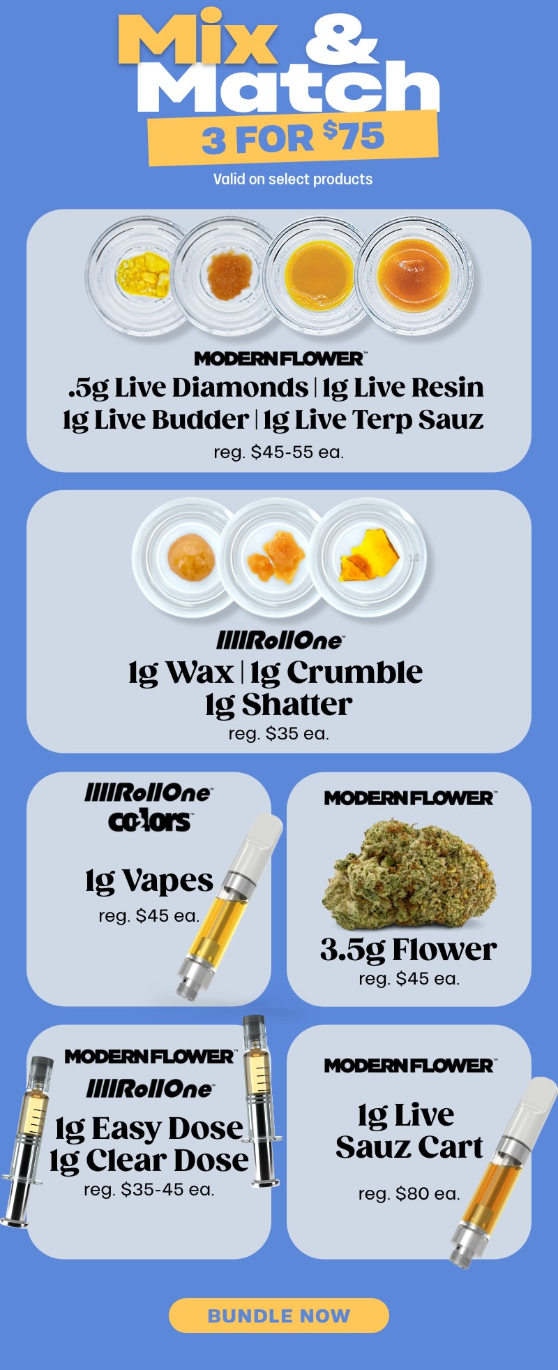 Sat-Sun Deals: Offer is valid 11/1/2025 – 11/2/2025 in Florida locations only. Orders must be placed by end of day on 11/2/2025 to qualify, store hours may vary. For delivery orders, orders must be placed by 11/2/2025 to qualify for savings. Pre-roll promotion excludes Khalifa Kush, Connected, and AlienLabs. β€ŒCannot be combined with any other patient discounts, coupon, product promotion or sale. Employees are eligible for promotion. β€ŒOffer has no cash value. Returns of any portion of the purchase will require equal forfeiture of offer or amount equal to offer. Trulieve, subsidiaries, affiliates, parent companies and third parties on behalf of Trulieve have the right to end or modify any offer at any time. Other restrictions may apply. Please see dispensary associate for more details. Product variety, availability, and THC% may vary by location.β€Œβ€Œβ€Œβ€Œβ€ŒΒ