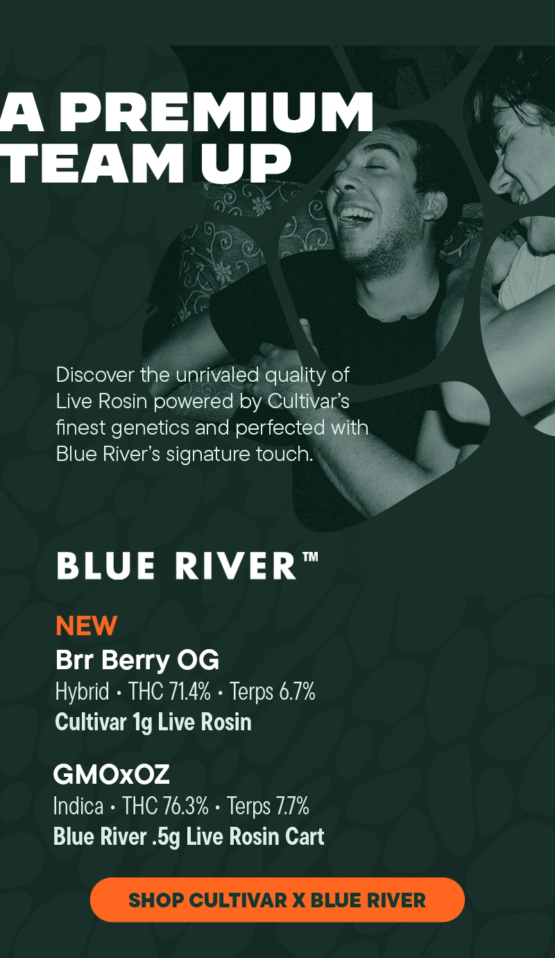 Blue River x Cultivar Collab: Offer is valid 11/30/2025 in Florida locations only. Orders must be placed by end of day on 11/30/2025 to qualify, store hours may vary. For delivery orders, orders must be placed by 11/30/2025 to qualify for savings. Cannot be combined with any other patient discounts, coupon, product promotion or sale. Employees are eligible for promotion. βOffer has no cash value. Returns of any portion of the purchase will require equal forfeiture of offer or amount equal to offer. Trulieve, subsidiaries, affiliates, parent companies and third parties on behalf of Trulieve have the right to end or modify any offer at any time. Other restrictions may apply. Please see dispensary associate for more details. Product variety, availability, and THC% may vary by location.βββββββ