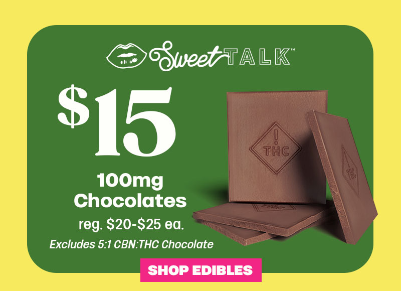 Fri-Sat Deals: Offer is valid 3/6/2025 – 3/7/2026 in Florida locations only. Orders must be placed by end of day on 3/7/2026 to qualify, store hours may vary. For delivery orders, orders must be placed by 3/7/2026 to qualify for savings. Chocolate promotion excludes 5:1 CBN:THC Chocolate. Cannot be combined with any other patient discounts, coupon, product promotion or sale. Employees are eligible for promotion. Offer has no cash value. Returns of any portion of the purchase will require equal forfeiture of offer or amount equal to offer. Trulieve, subsidiaries, affiliates, parent companies and third parties on behalf of Trulieve have the right to end or modify any offer at any time. Other restrictions may apply. Please see dispensary associate for more details. Product variety, availability, and THC% may vary by location.