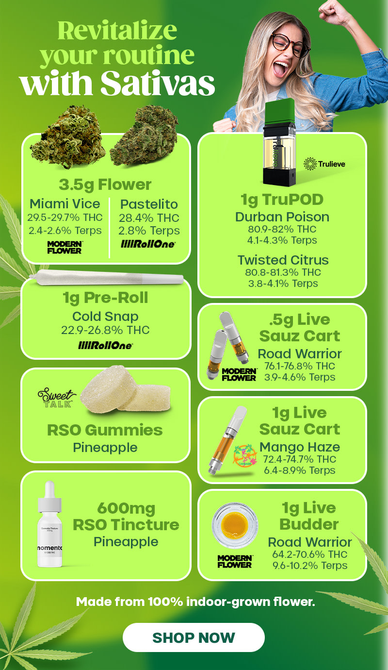 Saturday Deal: Offer is valid 1/10/2026 in Florida locations only. Orders must be placed by end of day on 1/10/2026 to qualify, store hours may vary. For delivery orders, orders must be placed by 1/10/2026 to qualify for savings. Offer valid on listed strain only, no substitutions. Limit 2 per customer. Cannot be combined with any other patient discounts, coupon, product promotion or sale. Employees are eligible for promotion. ‌Offer has no cash value. Returns of any portion of the purchase will require equal forfeiture of offer or amount equal to offer. Trulieve, subsidiaries, affiliates, parent companies and third parties on behalf of Trulieve have the right to end or modify any offer at any time. Other restrictions may apply. Please see dispensary associate for more details. Product variety, availability, and THC% may vary by location.‌‌‌‌‌‌‌
