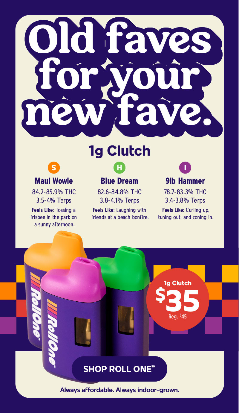 Roll One | Clutch: Offer is valid 2/1/2026 at 6pm – 2/3/2026 in Florida locations only. Orders must be placed by end of day on 2/3/2026 to qualify, store hours may vary. For delivery orders, orders must be placed by 2/3/2026 to qualify for savings. Cannot be combined with any other patient discounts, coupon, product promotion or sale. Employees are eligible for promotion. Offer has no cash value. Returns of any portion of the purchase will require equal forfeiture of offer or amount equal to offer. Trulieve, subsidiaries, affiliates, parent companies and third parties on behalf of Trulieve have the right to end or modify any offer at any time. Other restrictions may apply. Please see dispensary associate for more details. Product variety, availability, and THC% may vary by location.