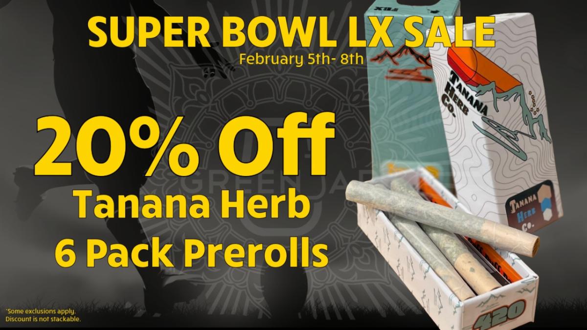 No matter which team you are rooting for Green Jar is here to help you throw the best tailgate party on your block! Stop in for some killer touchdown deals on Tanana Herb 6 pack pre-rolls, Tundra Brews and more!