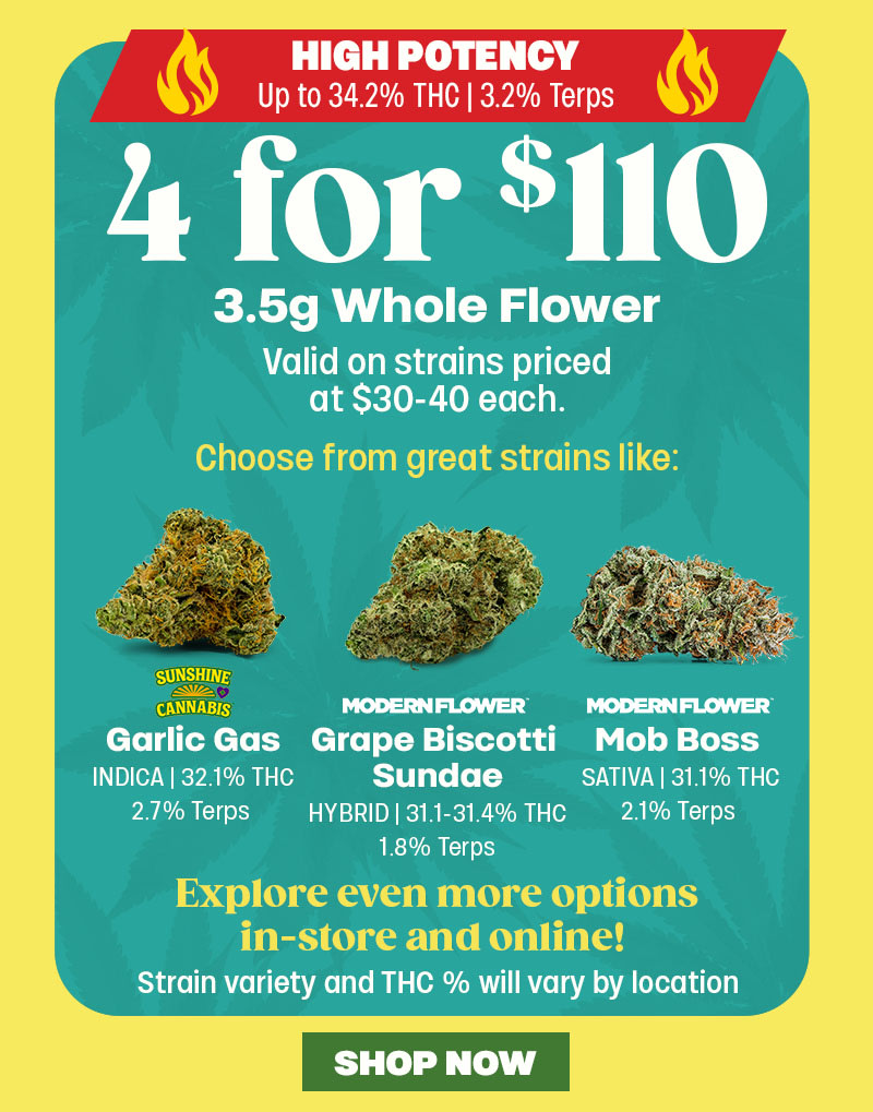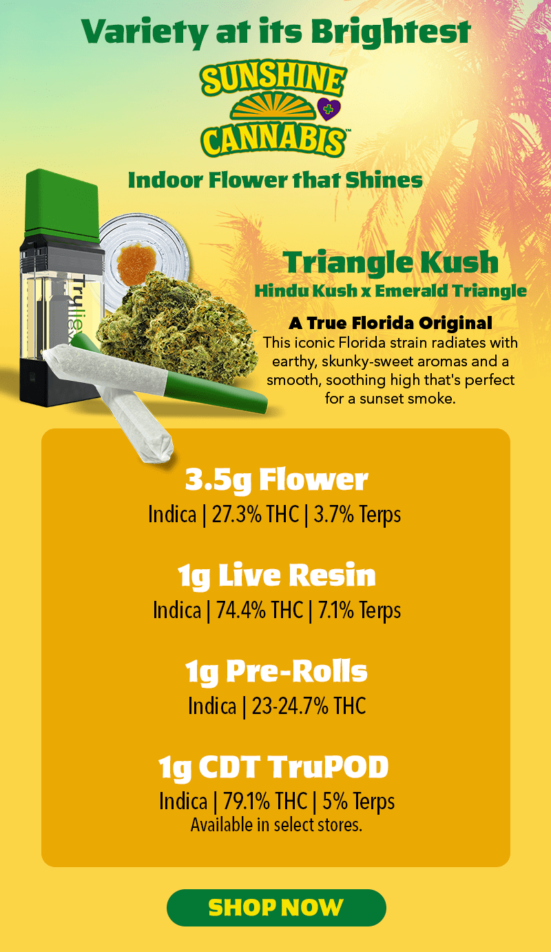 $20-25 Flower Highlight: Offer is valid 3/6/2025 – 3/8/2026 in Florida locations only. Orders must be placed by end of day on 3/8/2026 to qualify, store hours may vary. For delivery orders, orders must be placed by 3/8/2026 to qualify for savings. Offer valid on select strains and batches only. Cannot be combined with any other patient discounts, coupon, product promotion or sale. Employees are eligible for promotion. Offer has no cash value. Returns of any portion of the purchase will require equal forfeiture of offer or amount equal to offer. Trulieve, subsidiaries, affiliates, parent companies and third parties on behalf of Trulieve have the right to end or modify any offer at any time. Other restrictions may apply. Please see dispensary associate for more details. Product variety, availability, and THC% may vary by location.