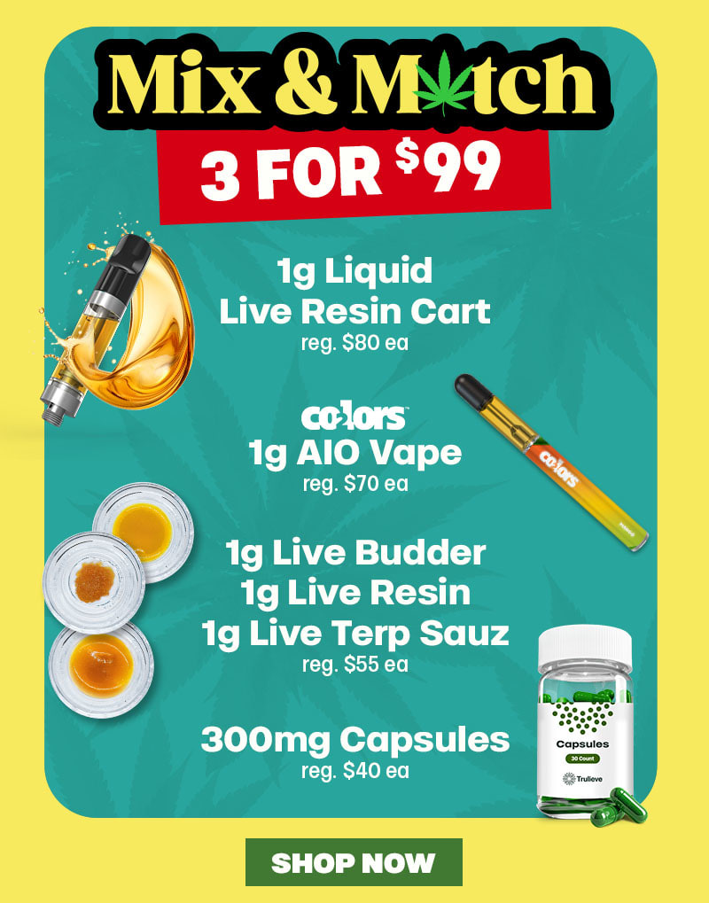 Fri-Sat Deals: Offer is valid 3/6/2025 – 3/7/2026 in Florida locations only. Orders must be placed by end of day on 3/7/2026 to qualify, store hours may vary. For delivery orders, orders must be placed by 3/7/2026 to qualify for savings. Chocolate promotion excludes 5:1 CBN:THC Chocolate. Cannot be combined with any other patient discounts, coupon, product promotion or sale. Employees are eligible for promotion. Offer has no cash value. Returns of any portion of the purchase will require equal forfeiture of offer or amount equal to offer. Trulieve, subsidiaries, affiliates, parent companies and third parties on behalf of Trulieve have the right to end or modify any offer at any time. Other restrictions may apply. Please see dispensary associate for more details. Product variety, availability, and THC% may vary by location.