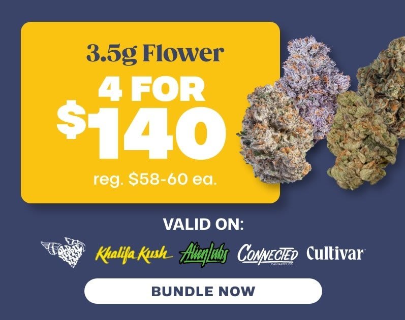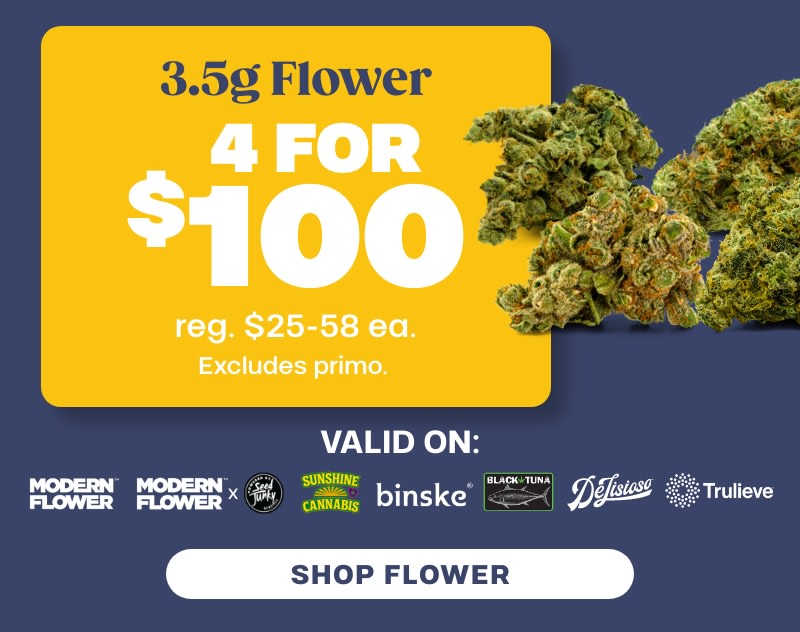Friday Deals: Offer is valid 9/26/2025 in Florida locations only. Orders must be placed by end of day on 9/26/2025 to qualify, store hours may vary. For delivery orders, orders must be placed by 9/26/2025 to qualify for savings. Flower bundle promotion excludes Primo. Discount taken on lowest priced item for pre-roll promotion. Cannot be combined with any other patient discounts, coupon, product promotion or sale. Employees are eligible for promotion. β€ŒOffer has no cash value. Returns of any portion of the purchase will require equal forfeiture of offer or amount equal to offer. Trulieve, subsidiaries, affiliates, parent companies and third parties on behalf of Trulieve have the right to end or modify any offer at any time. Other restrictions may apply. Please see dispensary associate for more details. Product variety, availability, and THC% may vary by location.β€Œβ€Œβ€Œβ€Œβ€Œβ€ŒΒ