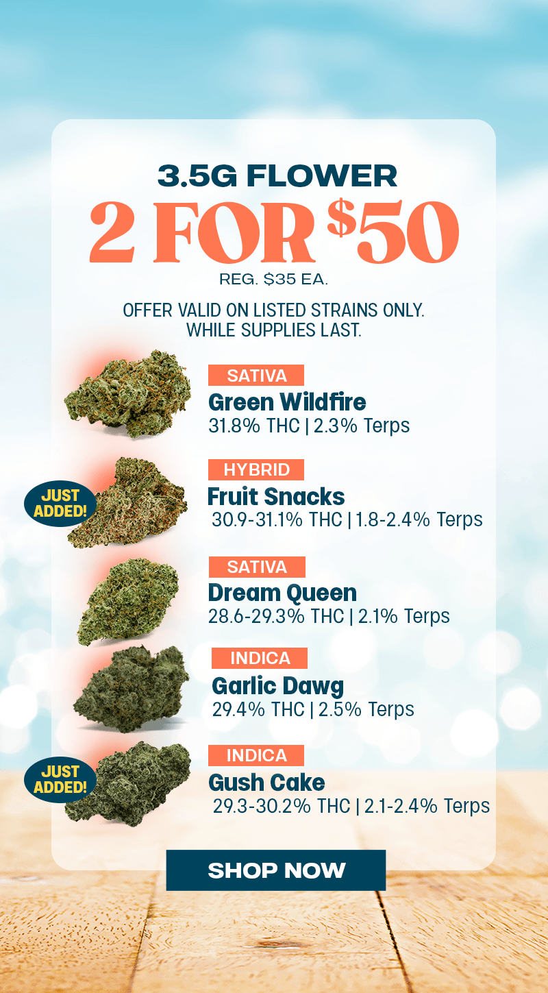 Fri-Sat Deals: Offer is valid 1/30/2026 – 1/31/2026 in Florida locations only. Orders must be placed by end of day on 1/31/2026 to qualify, store hours may vary. For delivery orders, orders must be placed by 1/31/2026 to qualify for savings. Cannot be combined with any other patient discounts, coupon, product promotion or sale. Employees are eligible for promotion. Offer has no cash value. Returns of any portion of the purchase will require equal forfeiture of offer or amount equal to offer. Trulieve, subsidiaries, affiliates, parent companies and third parties on behalf of Trulieve have the right to end or modify any offer at any time. Other restrictions may apply. Please see dispensary associate for more details. Product variety, availability, and THC% may vary by location.Β